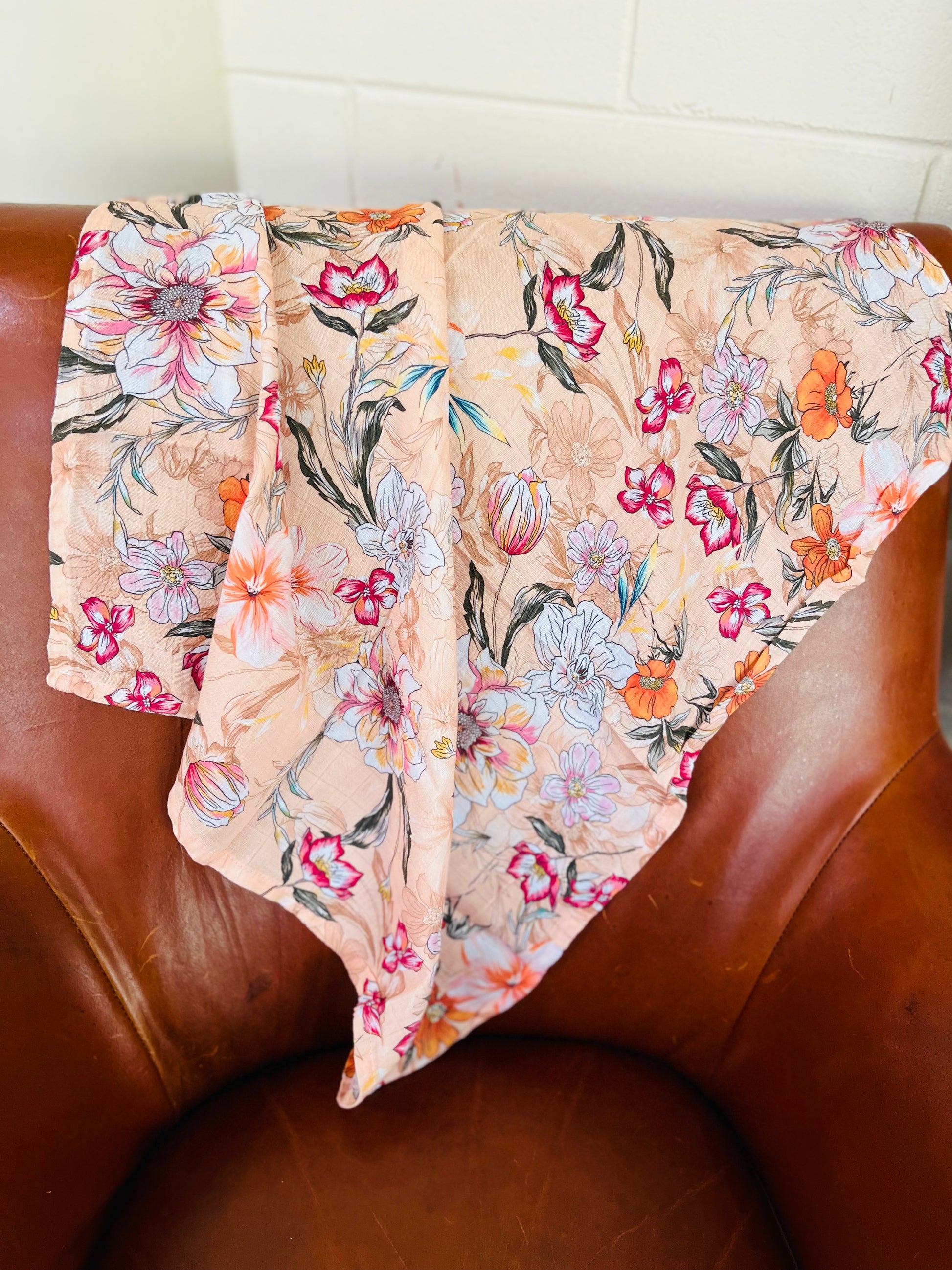 Our Apricot Blooms Bamboo Cotton Cloth is an essential item for every Bubby.