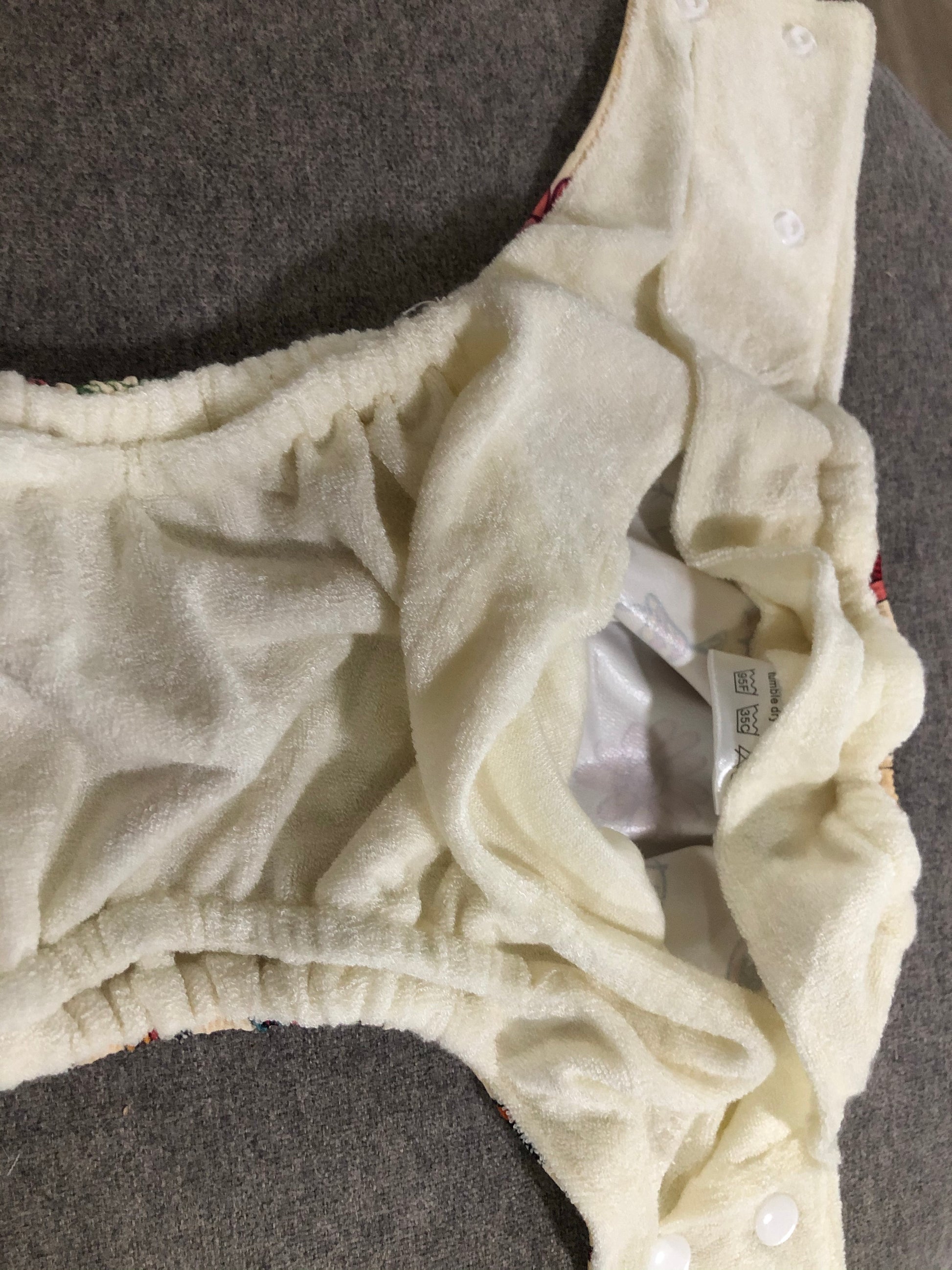 Due to the nature of the inner fabric, there may be some threads that develop from the material at the pocket openings. If this happens it can be cut off and will not affect the use of the nappy.