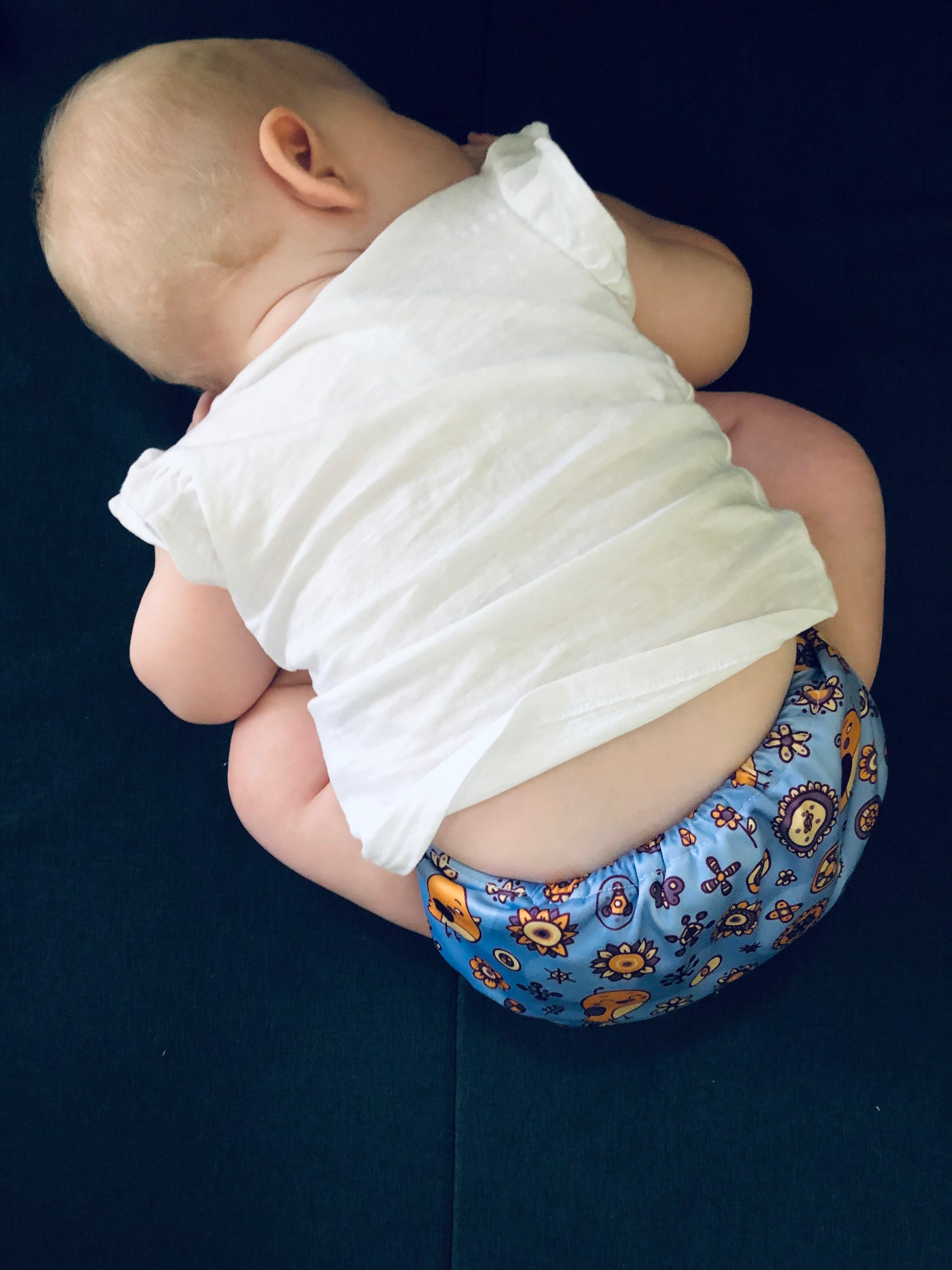 - Back gusset to give a snug fit & stop any unwanted mess and extra washing for bub’s clothes!