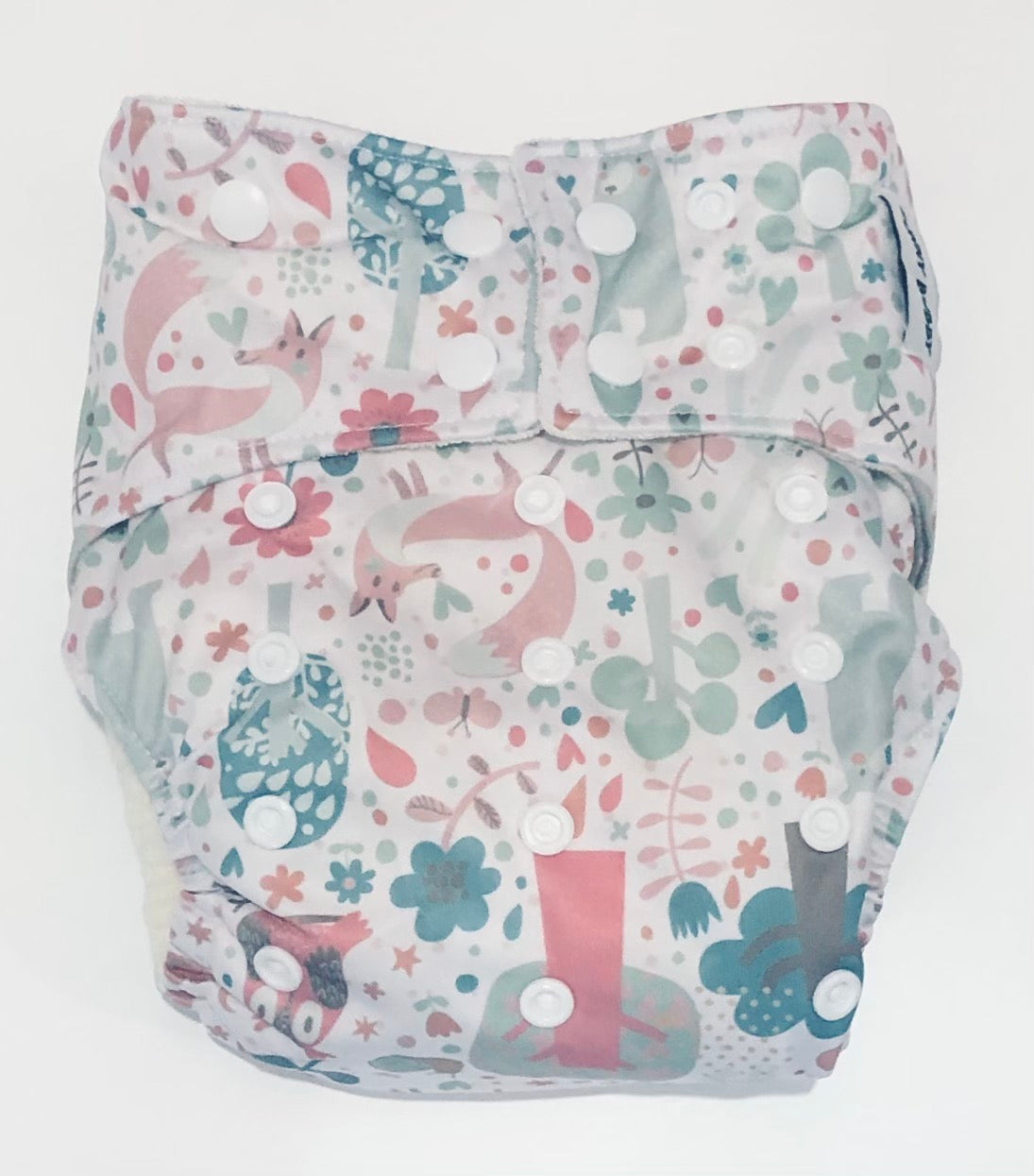 Our Forest Friends Modern Cloth Pocket Nappy OSFM with Bamboo Cotton French Terry Lining. This is a beautiful stand out print that would suit any bubby.