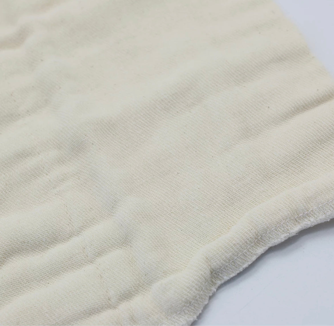 Muslin cotton is an absorbent natural fibre perfect to add to your insert collection. This is a great add in for heavy wetters and night nappy options. It absorbs quicker than hemp so it can go on top of a hemp insert or you can also pair this insert with another quick absorbing insert  (bamboo charcoal/coffee fibre) on top so the moisture is drawn away from your bubs skin quickly.