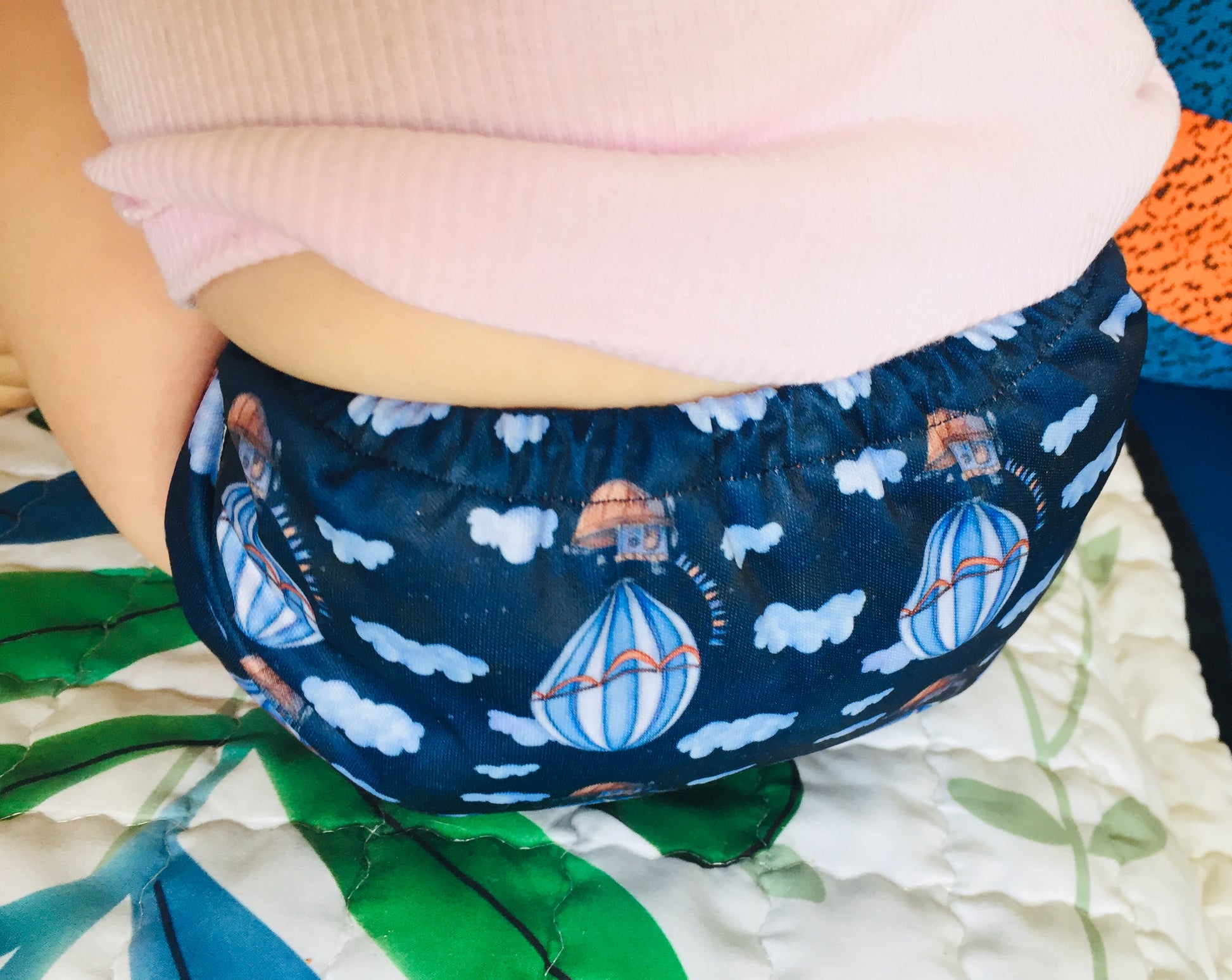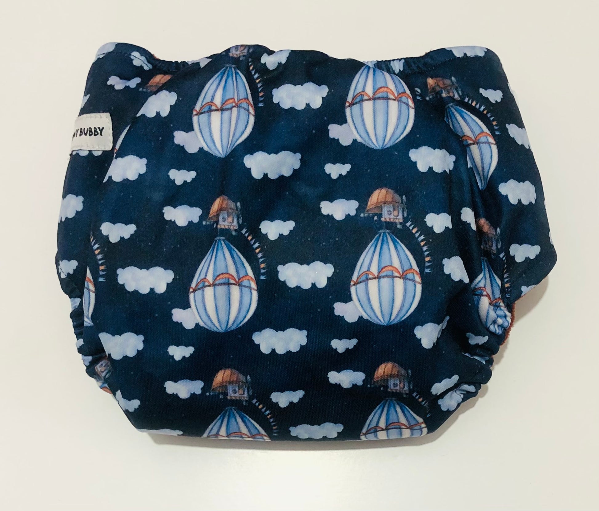 Our Navy Skies One Size Fits Most (OSFM) Pocket MCN with Coffee Fleece Lining is a beautiful stand out print that would suit any bubby.