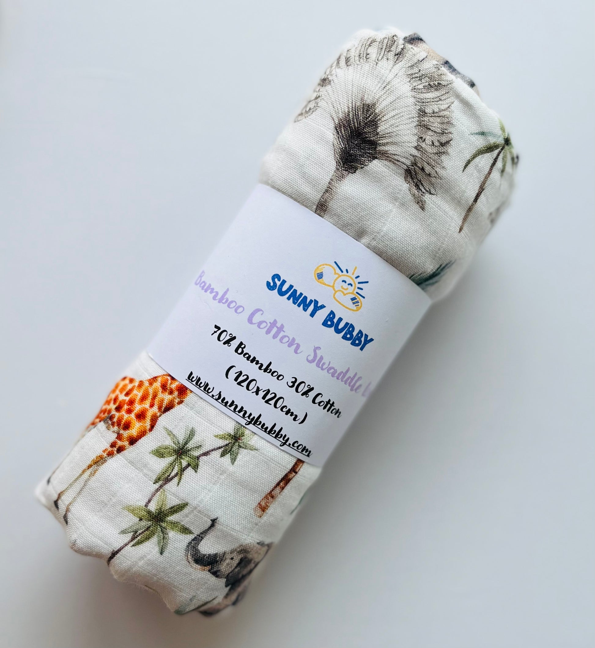 Our Safari 2.0 Bamboo Cotton swaddle is an essential item for every Bubby.