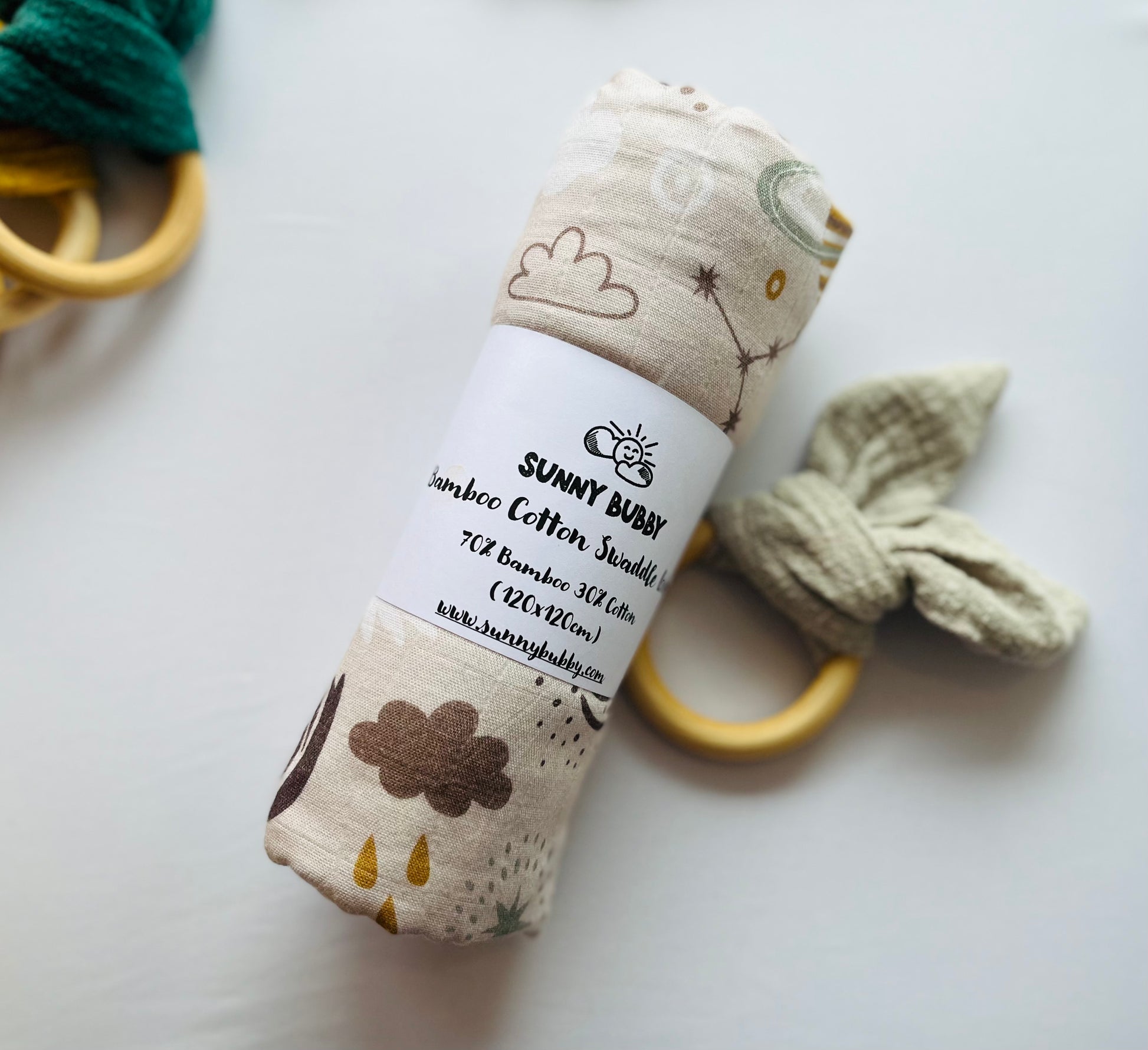Our Solar System Bamboo Cotton swaddle is an essential item for every Bubby.