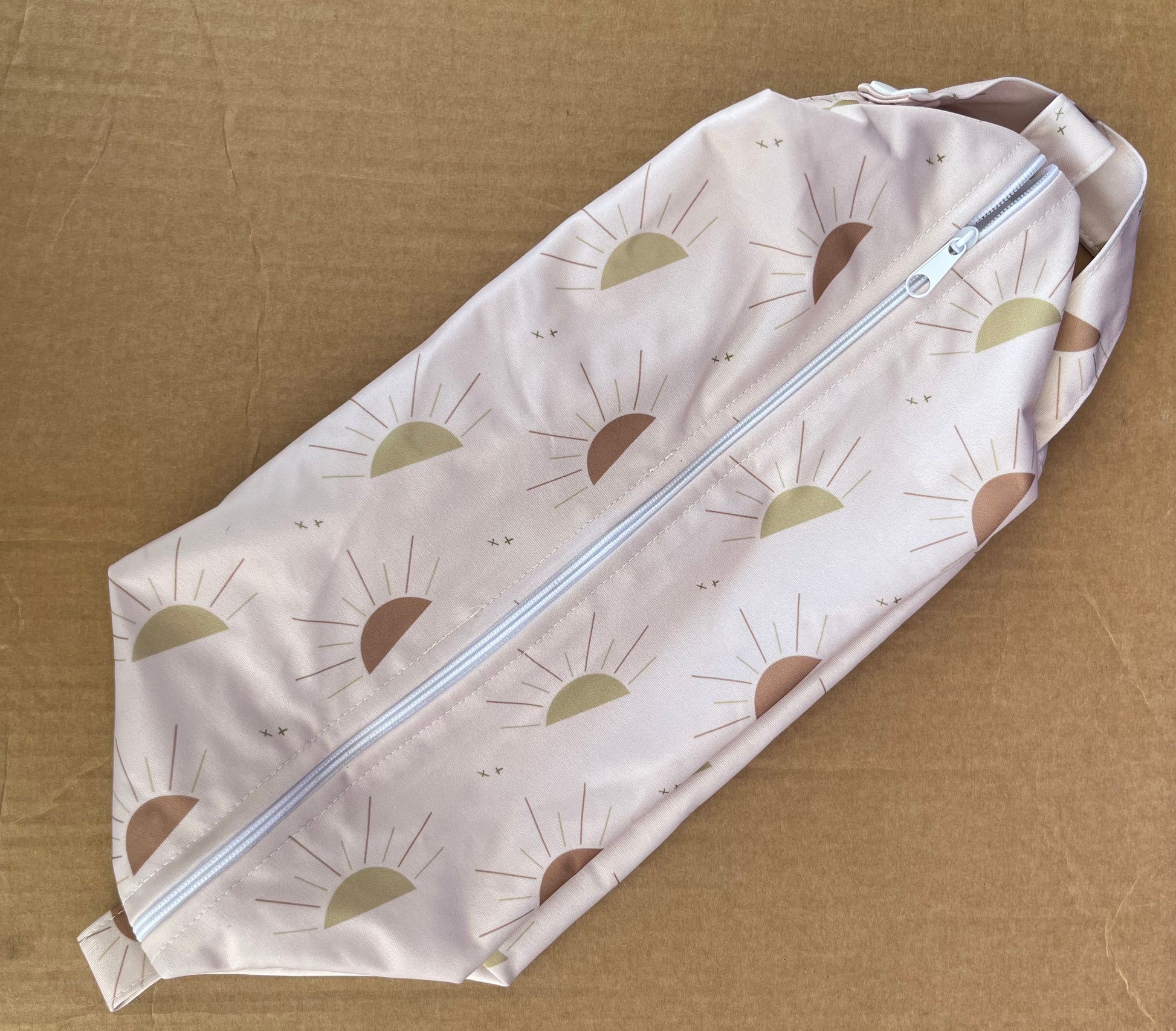 These wet bags are ethically handmade overseas so there will be some variation in the PUL print placement between items.