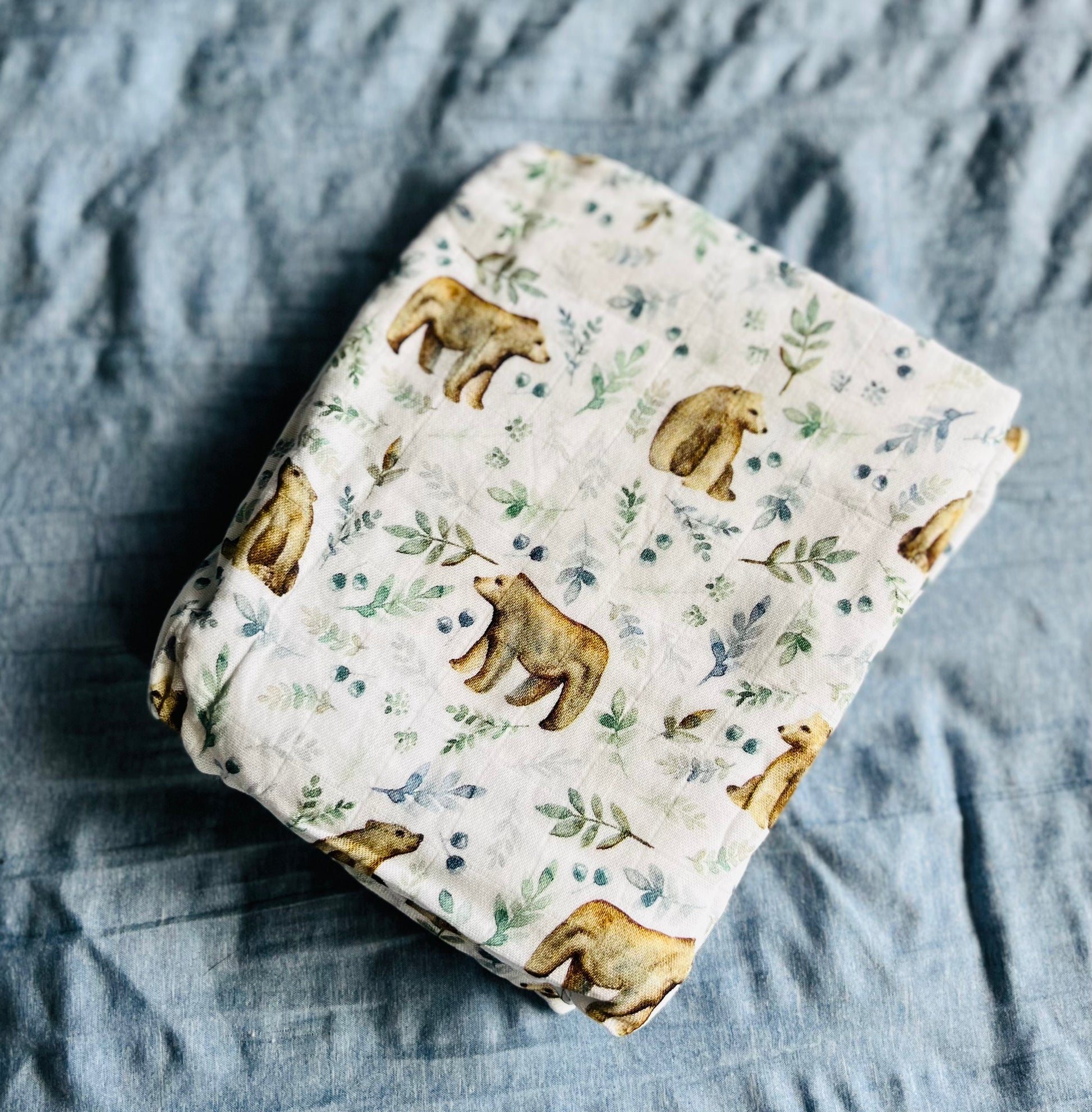 our The Bears Bamboo Cotton swaddle is an essential item for every Bubby.