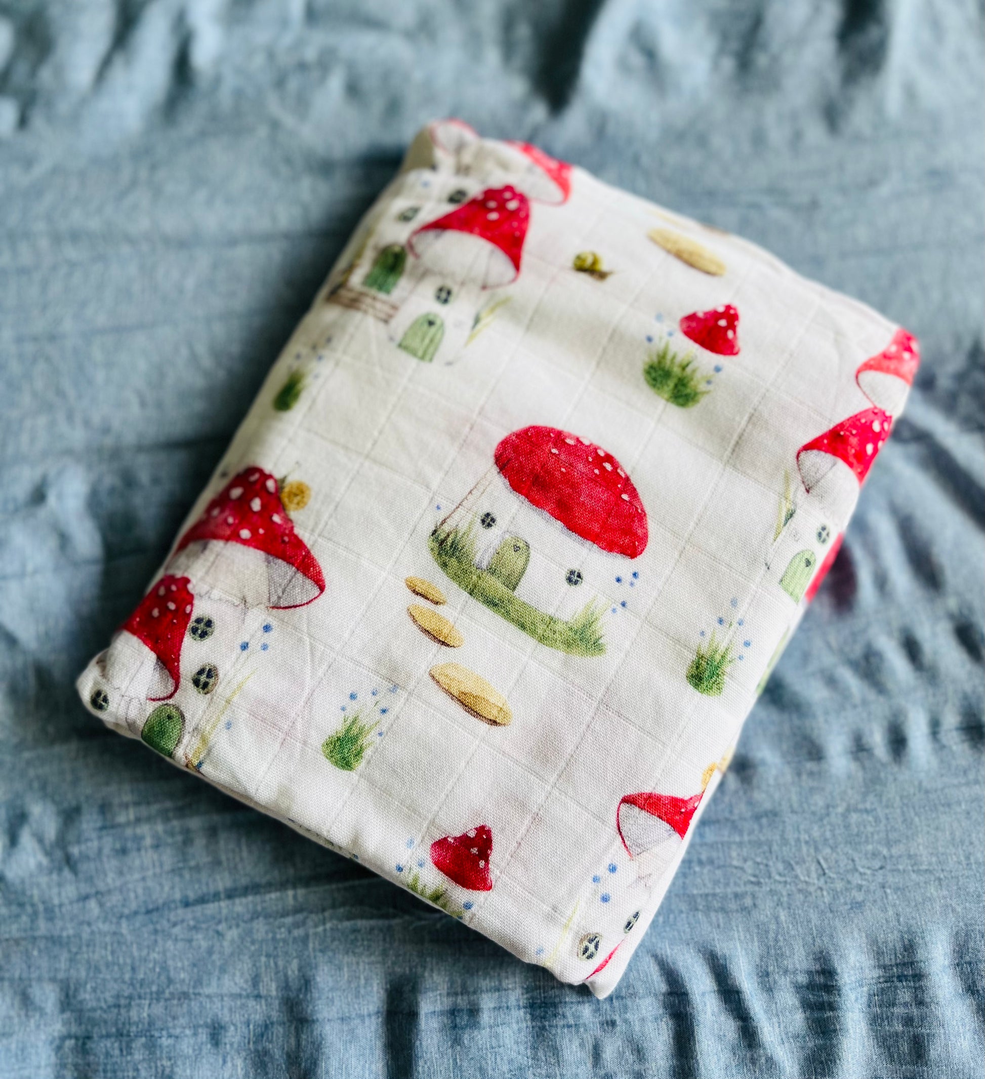 our Toadstool Bamboo Cotton swaddle is an essential item for every Bubby.