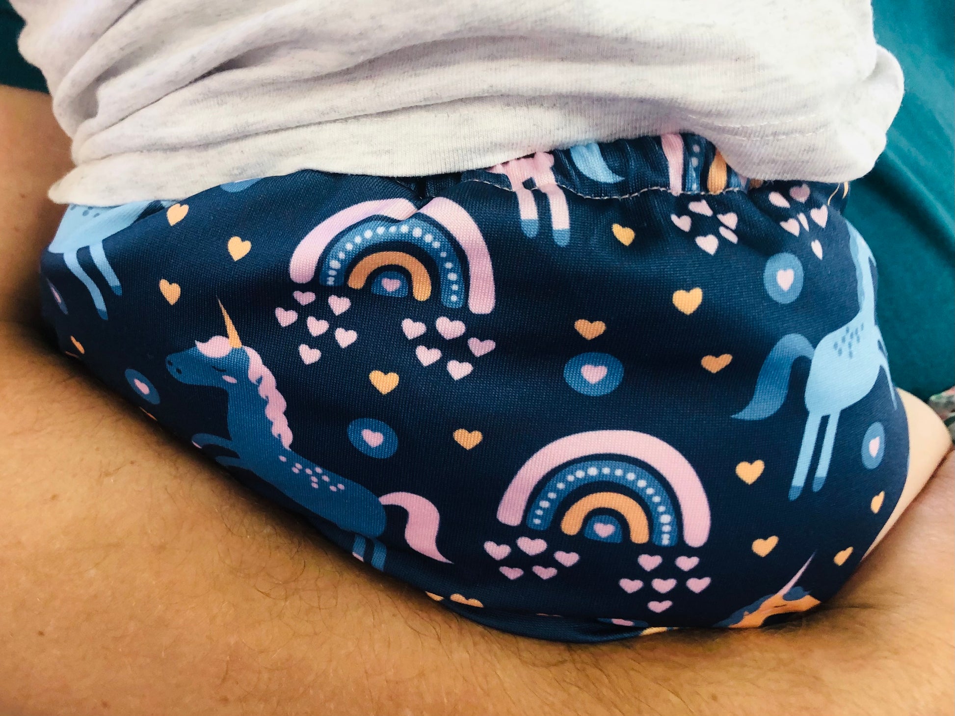 Our Unicorn Dreams Modern Cloth Pocket Nappy OSFM with Bamboo Cotton French Terry Lining. This is a beautiful stand out print that would suit any bubby.